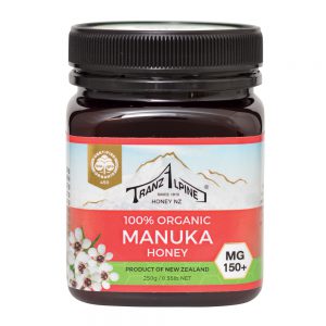 $69.95Organic certified Manuka Honey MG150+ with certified MGO level >150mg/kg packed in PET amber jars. Features & Benefits New Zealand’s Manuka honey is one of nature’s true wonder-foods. Sourced from the native Manuka tree (Leptospermum Scoparium) this healing honey has been sought after for hundreds of years. And recent studies have unlocked many more health … <a href="https://beecology.co.nz/shop/tranzalpine-organic-manuka-mg150-250g/" class="more-link">Continue reading<span class="screen-reader-text"> "TranzAlpine Organic Manuka MG150+ 250g"</span><span class="meta-nav">→</span></a>