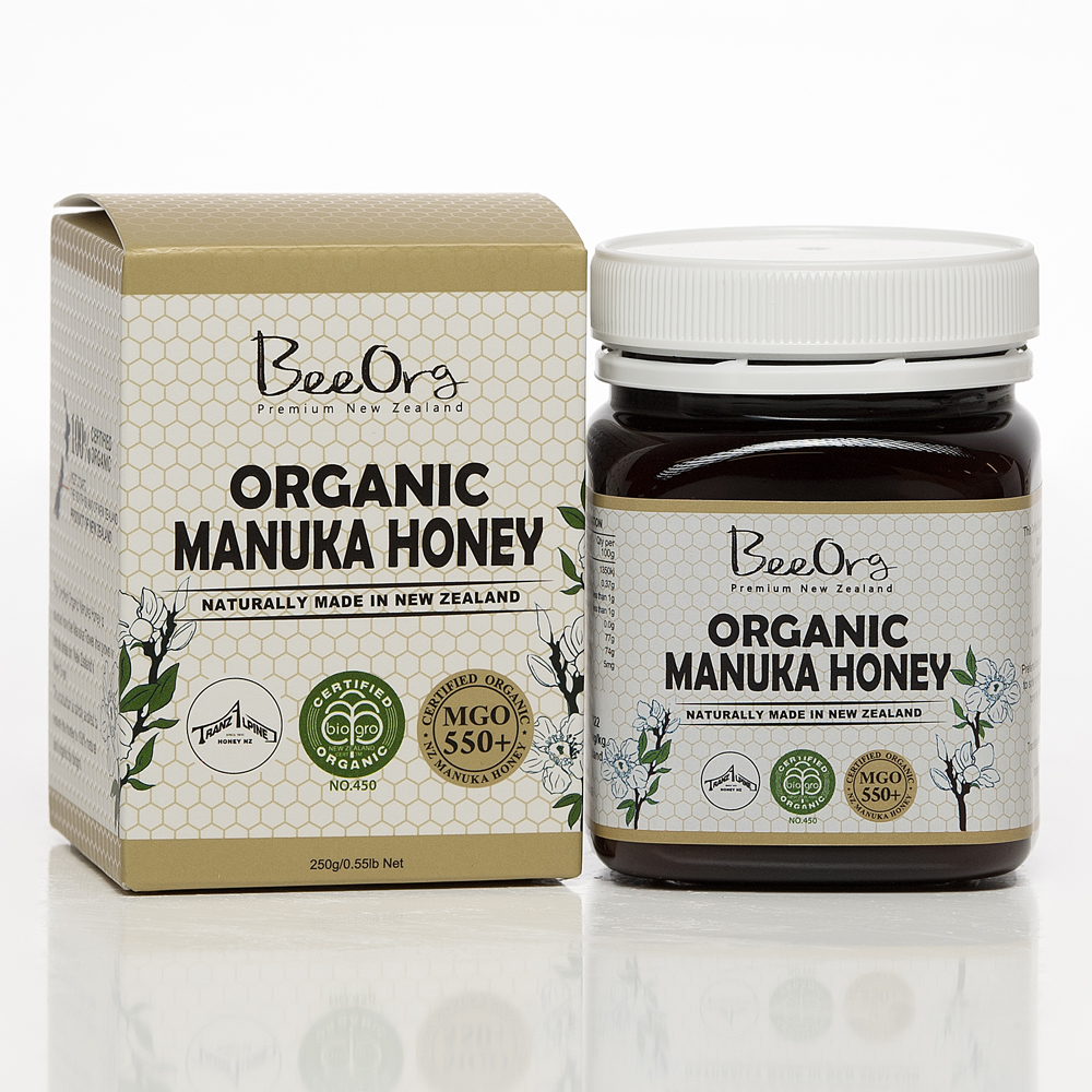 - BeeOrg Manuka Honey 550+ is rare high MGO rated Organic Manuka honey